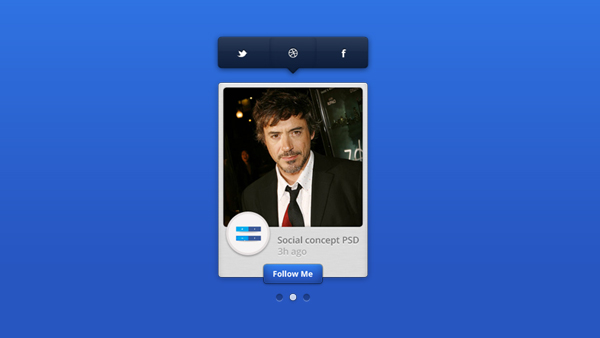 طرح مفهومی از یه ویجت شبکه اجتماعی که توش از تصویر نمایه، دکمه دنبال و لینک به حساب های کاربری تو شبکه های اجتماعی فیسبوک، توئیتر و Dribbble استفاده شده. این طرح زیبا می تونه هم تو سایت ها هم تو نرم افزارها استفاده بشه.