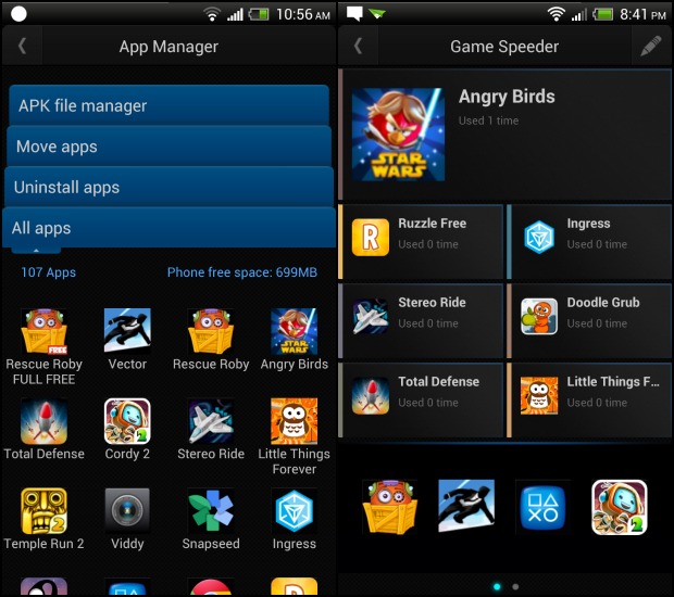 اگه گوشیتون قدیمیه و بازی ها و فیلم های HD رو به کندی اجرا می کنه، AMC به عنوان قاتل کندی وارد عمل میشه و دستگاه شما رو به روز اول خودش بر می گردونه یا شاید از روز اول هم بهتر! AMC همچنین یه بخش واسه مدیریت اپ داره که شما می تونید برنامه هاتون رو باهاش جابجا یا حذف کنین. حتی APKs (بسته های نصب) های موجود روی دستگاهتون رو هم می تونین نصب یا حذف کنین.